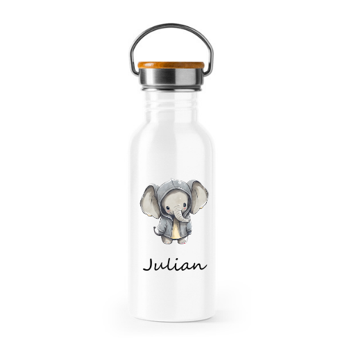 Diese stilvolle Trinkflasche aus Edelstahl mit Bambusdeckel ist dein idealer Begleiter für unterwegs – ob beim Sport, Wandern, im Büro oder in der Schule.