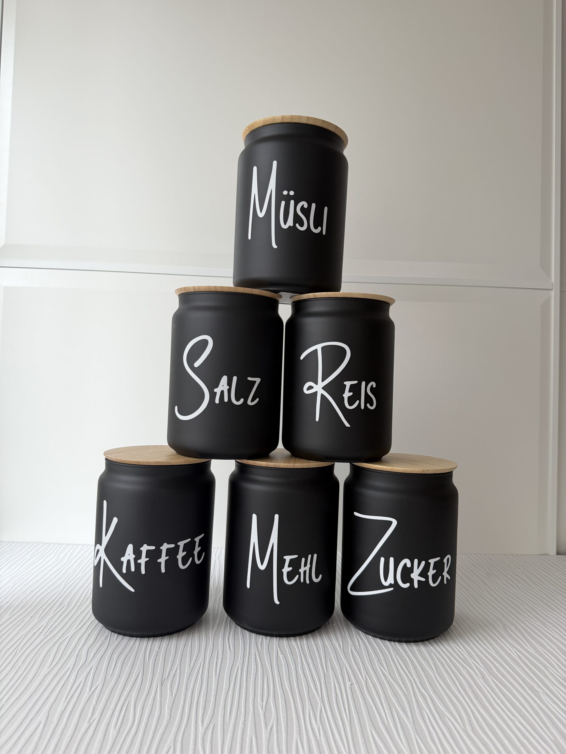 Jedes Glas kann individuell mit deinem Wunschtext personalisiert werden – ob Zucker, Mehl, Müsli, Kaffee, Reis, Nudeln, Linsen, Quinoa oder Naschis. So entsteht ein einheitliches, stilvolles Aufbewahrungssystem, das nicht nur praktisch, sondern auch ein echter Blickfang ist.